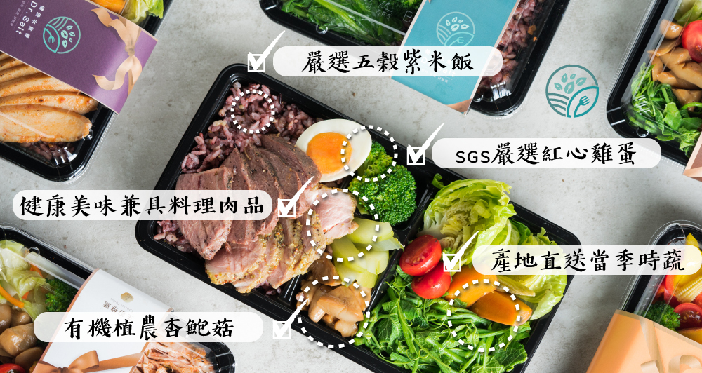 🍚 五穀紫米飯 –富含膳食纖維與營養素,口感Q彈,讓飽足感更持久。