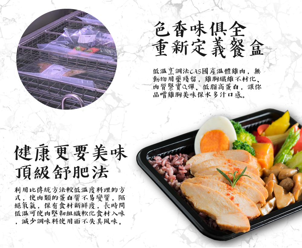 🥦 兩款當季綠色蔬菜 –嚴選新鮮時蔬,低溫烹調,保留天然風味與豐富維生素。